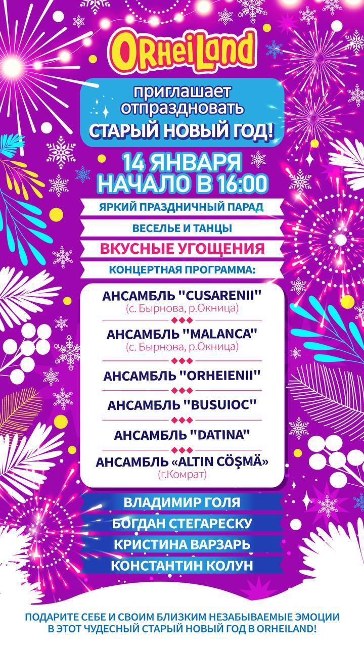 14 января празднование продолжится в OrheiLand. Художественная программа будет разнообразной, включая выступления местных ансамблей, а также коллективов из Окницкого района и Комрата. Для гостей праздника выступят Cusărenii, Malanca, Orheienii, Busuioc, Datina и Altın.