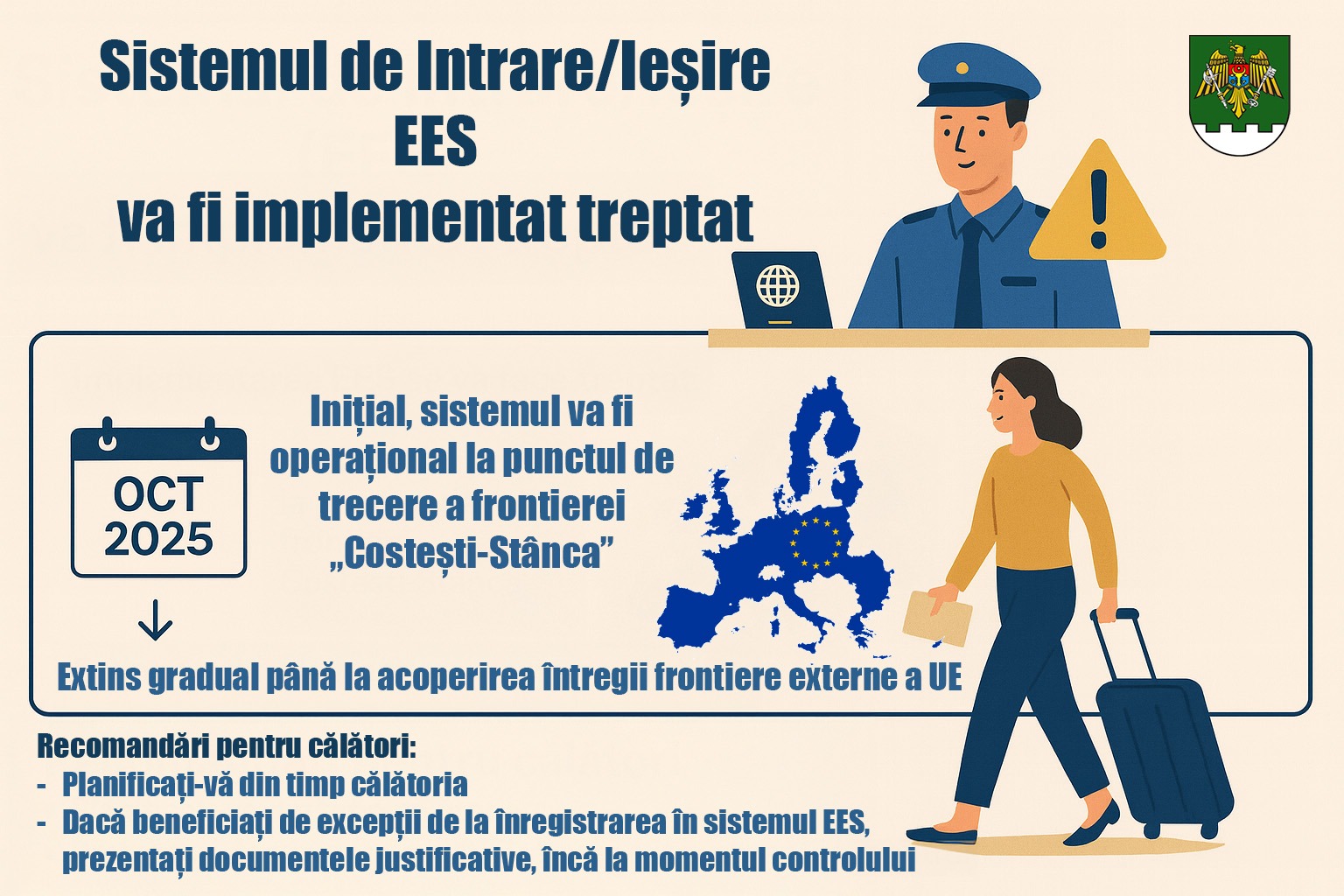 Duminică, 12 octombrie 2025 , la nivelul Uniunii Europene va fi operaționalizat Sistemul de Intrare/Ieșire (EES), un instrument electronic modern de control la frontierele externe ale Uniunii Europene.