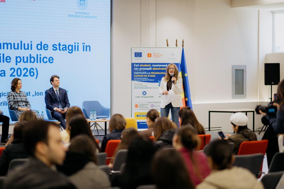 Programul comun de stagii al Uniunii Europene și al Guvernului Republicii Moldova a fost lansat oficial, astăzi, la Universitatea Pedagogică de Stat „Ion Creangă” din Chișinău. În ediția 6.1, sunt disponibile 146 de locuri de stagiu în 48 de autorități publice.
